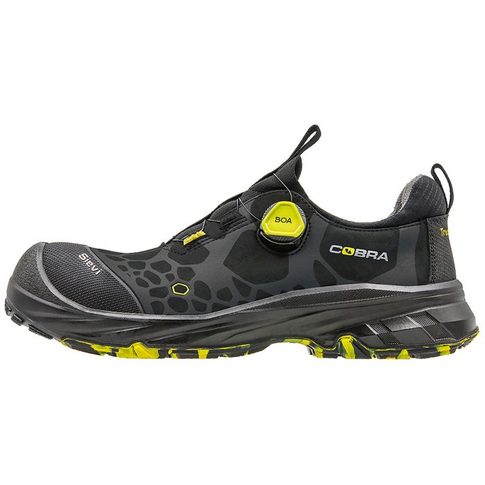 Chaussure de sécurité au confort accru par sa structure en forme de chaussette et le mécanisme de serrage BOA® Fit System en position latérale. Excellentes adhérence et résistance à l’usure assurées par la semelle antidérapante Sievi TractionPro®, dont la géométrie sportive offre une tenue et un amortissement des chocs tout particulier au niveau des zones d’appui du pied. L’élément flexible FlexEnergy® absorbe l’énergie cinétique générée et en restitue plus de 55 % à la production du pas.