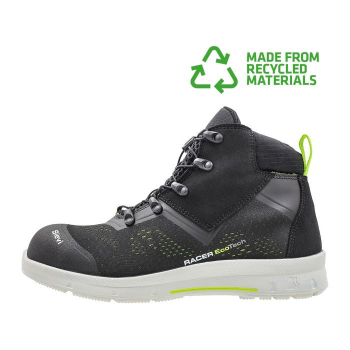 Les chaussures montantes Racer EcoTech H maximisent l’utilisation de matériaux recyclés. Elles ont une protection des orteils en aluminium et une protection antiperforation en textile. Leur dessus en textile tissé est extrêmement aéré et résistant à l’usure. Le mécanisme de fixation Sievi FastLace® assure un chaussage rapide et agréable et la semelle amovible Sievi Green Comfort garantit un confort accru.