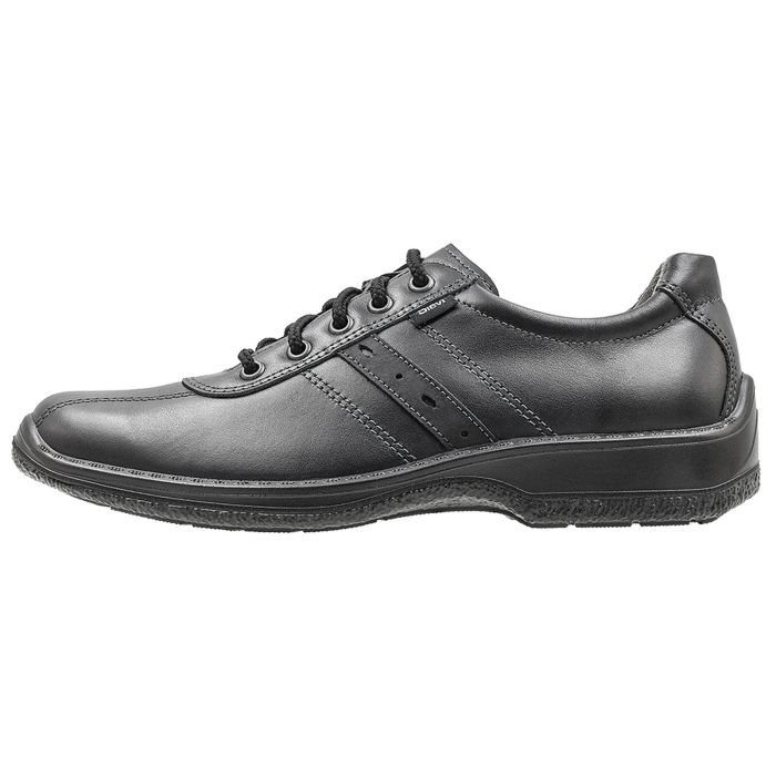 Tige en cuir grain noir qui garde bien sa forme et refoule l’eau. La doublure 3D-dry® maintient longtemps les pieds secs et frais. La semelle d’usure souple Flexstep® en polyuréthane, amortit les chocs s’appliquant aux pieds et à la colonne vertébrale. La semelle interne est une semelle amovible Sievi Comfort antistatique, aérée et lavable en machine (40 ˚C). Agréé ESD.